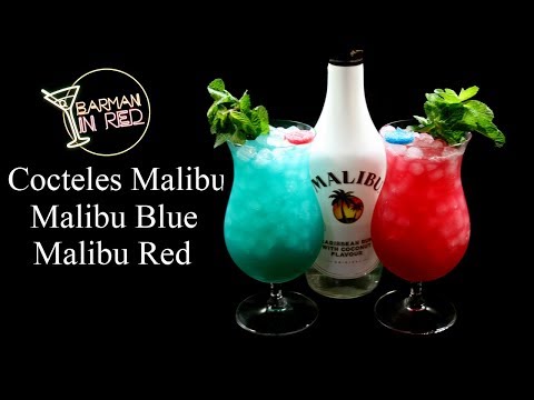 2 cocteles con Malibu - Malibu Blue y Malibu Red - Cocktail De Malibu - Visita mi blog con las recetas: http://www.barmaninred.com Libros Barman in Red: http://www.blurb.com/user/barmaninred Coctel Malibu Blue Ingredientes 2 oz ...